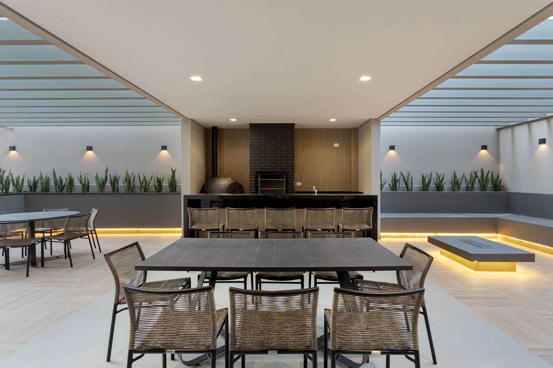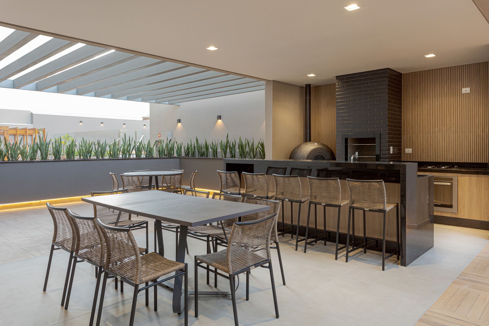 Imagens Ilustrativas. Área de lazer entregue mobiliada e decorada de acordo com memorial descritivo. Cores, texturas, materiais de acabamento e de decoração, paisagismo e detalhes construtivos podem variar. O edifício será entregue de acordo com o memorial descritivo do empreendimento. A incorporação está registrada na matrícula nº 125.539 do 1º Serviço de Registro de Imóveis de Maringá – PR. Por se tratar de um bem a ser construído, as áreas podem sofrer pequenas alterações. CREA 7156.